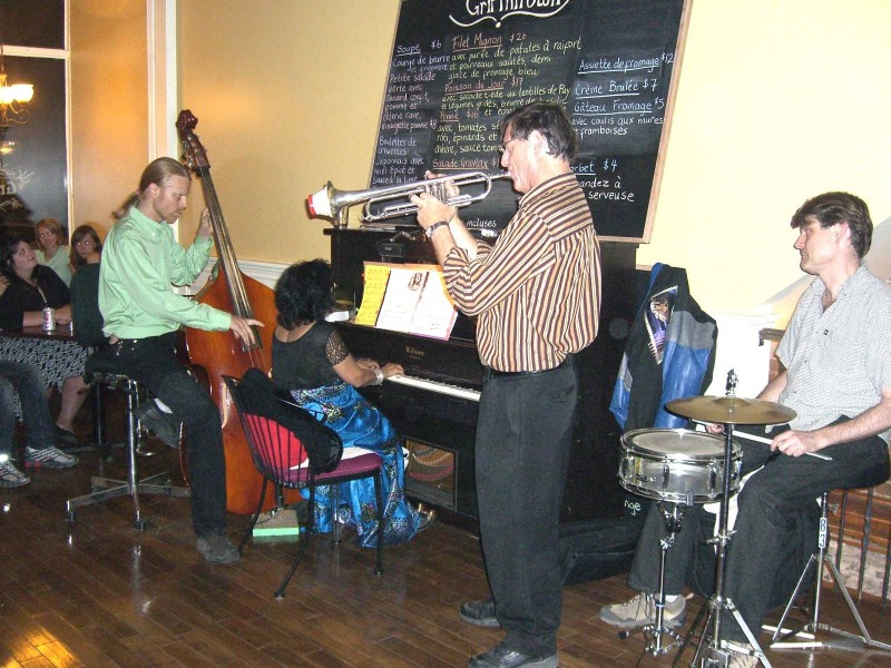 October 9, 2008 - That's me on the piano with the rest of the band members, Mark, Roger and Eloi. I'm in a sari because Global TV were in to film us that night after Jamie Orchard called me.