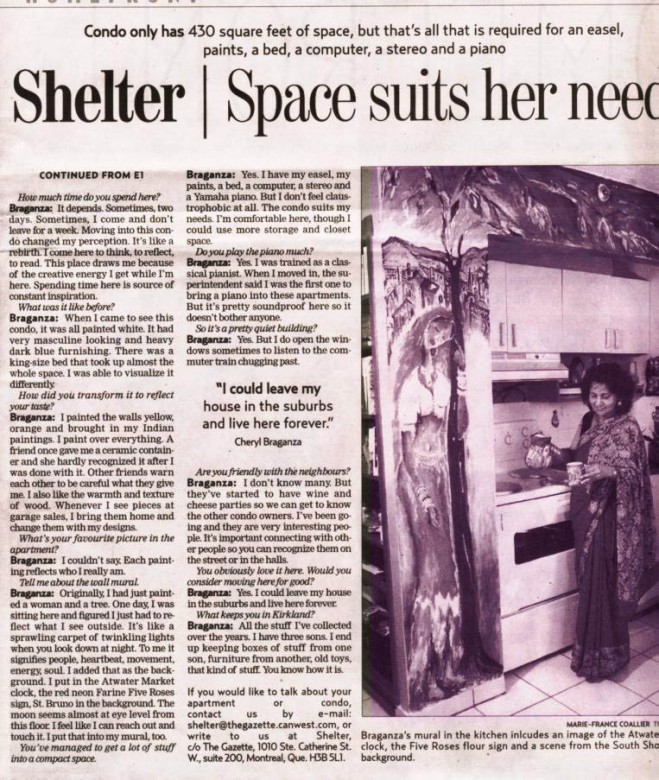 TAPPING INTO BUZZ OF THE CITY: Page 2 of article in the Montreal Gazette dated April 3, 2004. Shows wall mural I painted.