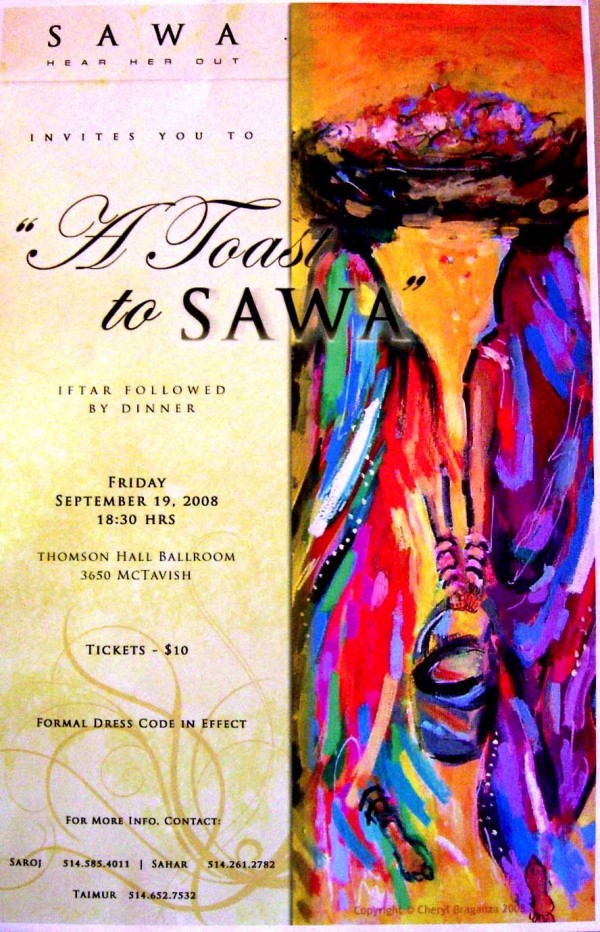 DARING, CARING, SHARING (2008)painting used to advertise McGill University banquet for South Asian Women's Aid, September 19, 2008.