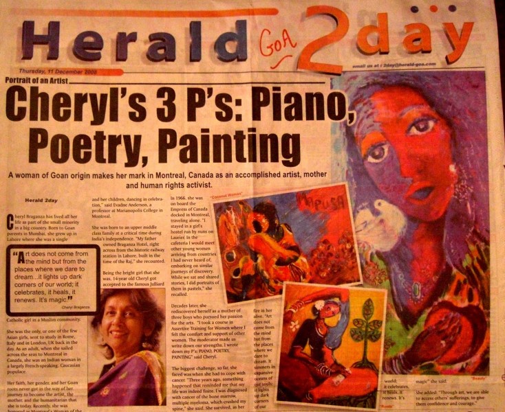 December 11, 2008. Article by Raymond Legaspi published in the GOA HERALD after hearing of the Montreal Woman of the Year award.