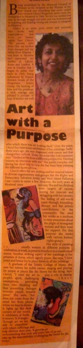 January 24, 2009 - after an interview with Cedric Silveira in Goa, this article entitled ART WITH A PURPOSE was published in the NAVHIND TIMES of Goa.
